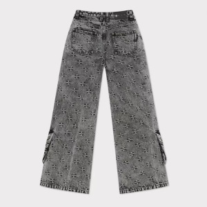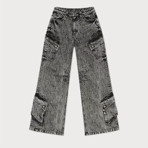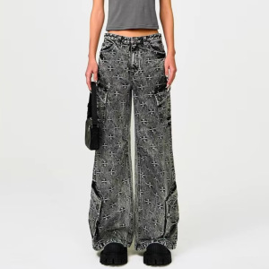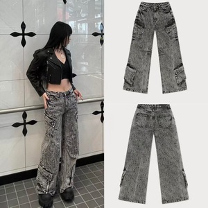 SKスターファントム航海ジーンズ ウォッシュドコットン 多ポケット カジュアルデザイン ワイドレッグパンツ 25春新作