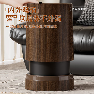ハイエンド模造木目ゴミ箱 2025 新しい家庭用ダブルバケツ取り外し可能な衛生バケツ大容量蓋なし紙バスケット