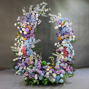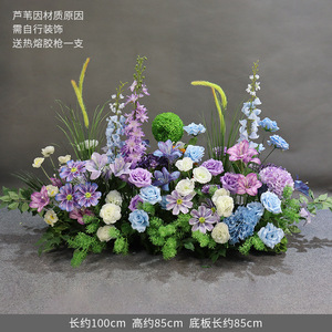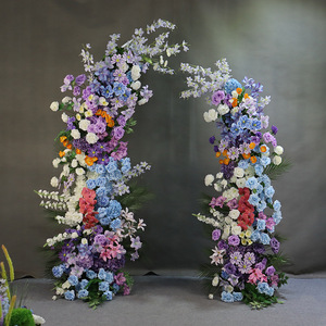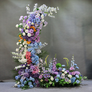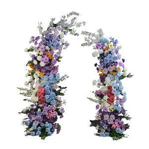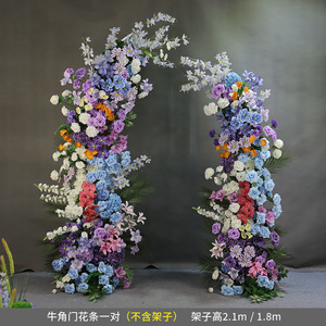婚礼堂紫色成品莫奈牛角拱门多巴胺仿真花条舞台造景橱窗美陈花艺