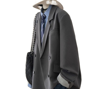 大码灰色宽松显瘦西装女2025春季新款高品质袖口设计感复古外套