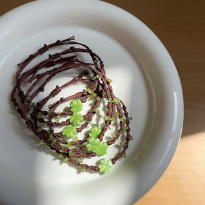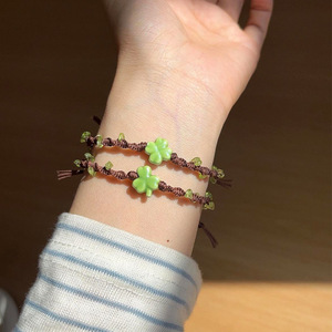 DIY 手作り幸運の四つ葉のクローバーブレスレット素材パッケージフォレストスタイル小さなクリアインニッチクリエイティブギフト織りブレスレット