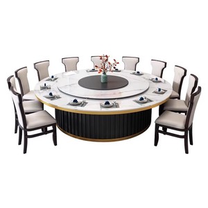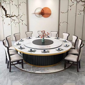 酒店餐桌大圆桌电动转盘岩板20人会所饭店包厢桌椅组合商用火锅桌
