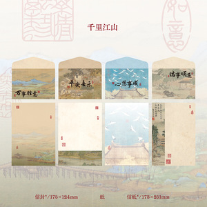 Qianli Jiangshan Mix and Match 1 パック (封筒 4 枚 + レター用紙 4 枚)