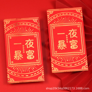 クリエイティブな富と幸運の赤い封筒バッグ、パーソナライズされた千元の大きな赤い封筒、赤い背景とホットスタンピング、ハイエンドのギフト卸売