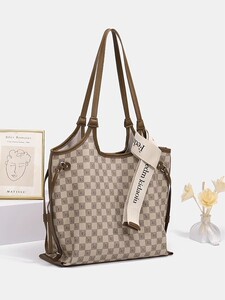 レトロプリント大容量トートバッグ女性のための 2025 春夏新ニッチファッション多用途通勤ハイエンドショルダーバッグ