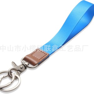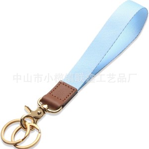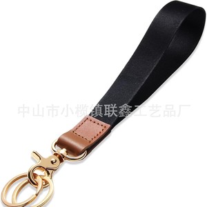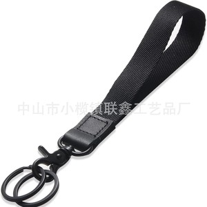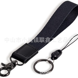 ダブルループポリエステル織り + PU レザーキーホルダーストラップリストストラップショートロープキーホルダーショートストラップカスタムメイド