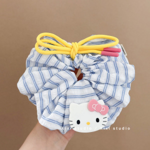 韓国 KT 猫リボンヘアロープさわやかなブルーストライプ大ヘアリングヘッドロープボールヘアバンド