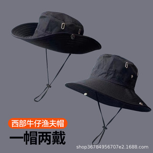 女性用帽子、登山用フィッシャーマンハット、女性用アウトドア用つばの大きなフィッシングハット、ハイキング用サンシェード、男性用ウエスタンビッグヘッドカウボーイハット