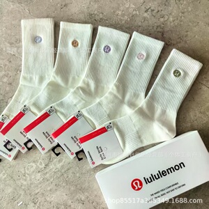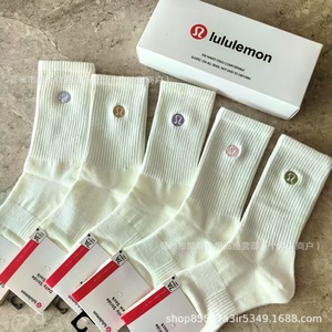 新款lulu瑜伽女袜纯色露露刺绣高筒女士运动袜子盒装户外跑步袜子