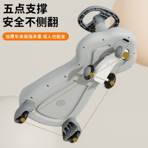 子供用ツイストカー、スライドカー、スイングカー、1~8歳男女兼用ベビースクーター、静音フラッシュホイール、大人も乗れる