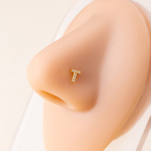 軽くて豪華でコンパクトな26英字のノーズピアス、男女兼用、トレンディでクールなマイクロジルコンビーズストレートニードルピアスノーズピアス