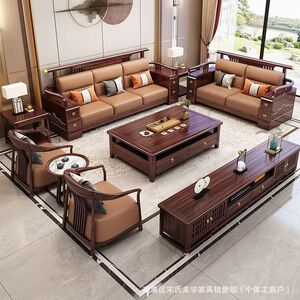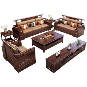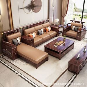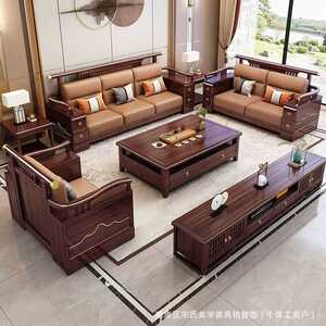 新中式乌金木实木沙发别墅客厅家具组合榫卯结构冬夏两用储物沙发