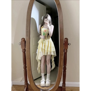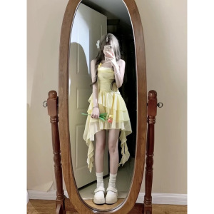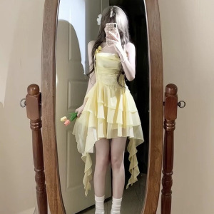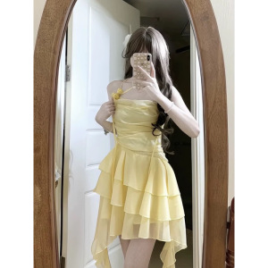 多巴胺夏季连衣裙新款不规则超仙设计感短裙度假风拍照吊带裙子女