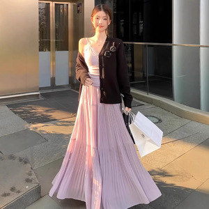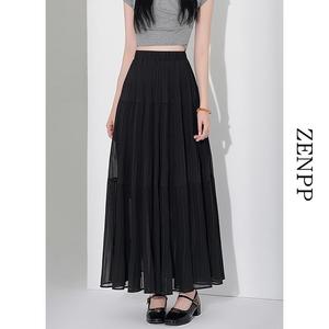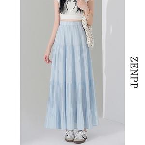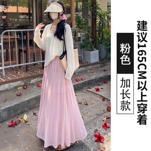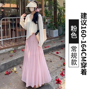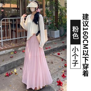 パープルシフォンスカート レディース 夏 ハイウエスト 細見え アンブレラスカート 小柄さん向け 万能プリーツAラインスカート ミディアム丈 A4358