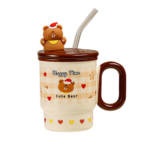遊び心のあるかわいい動物ストローセラミックウォーターカップオフィス蓋付き大容量マグ誕生日プレゼントお土産