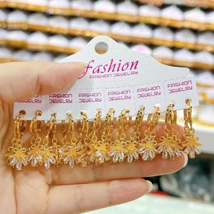 跨境耳扣欧美扇形耳环女式耳圈复古耳饰个性微镶锆石吊坠高级耳钉