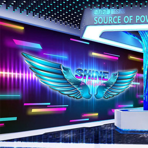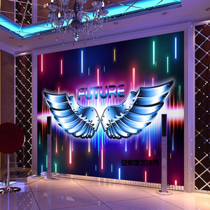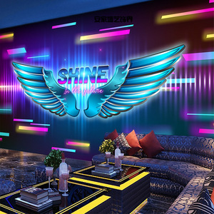 KTV酒吧前台科技感墙纸3D立体网红打卡翅膀壁纸闪光直播背景墙纸