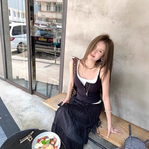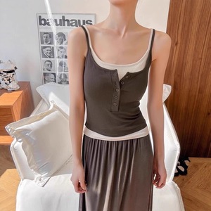 10125 # 夏の新作フェイクツーピースキャミソール、ラウンドネック、鎖骨が見える、多用途のオールインワン、胸付き、スリムフィット