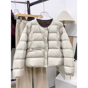 2025冬新作ラウンドネックシンプルホワイトダックダウンショートダウンジャケット女性用小柄ゆったり痩身厚みのある保護