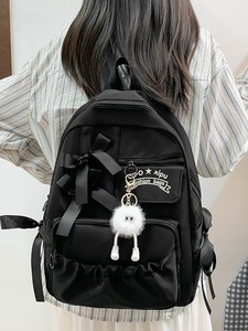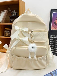 女子大生用ランドセル、大容量カレッジスタイルバックパック、かわいいリボンバックパック、シンプルなプリーツ学生バッグ