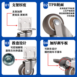 L タイプ 08 TPR サイレント 1.5 インチ ユニバーサル ブレーキ ホイール