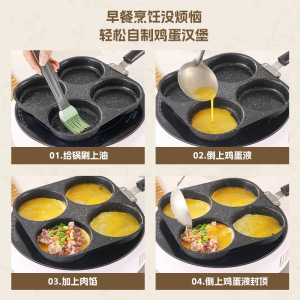 ネットで話題の電気木製ハンドル付きフライパン 家庭用朝食ポーチドエッグ、パンケーキ、ハンバーガー用ノンスティック多孔型平底フライパン