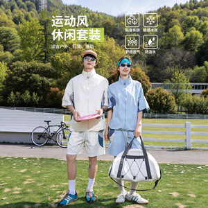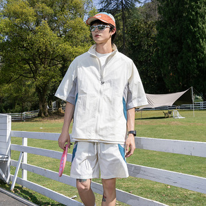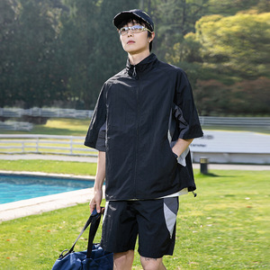 IZEXX トレンディな夏の日焼け止め Tシャツ半袖スーツ男性と女性のためのスプライスアイスシルクルーズスタンドカラートップジャケット