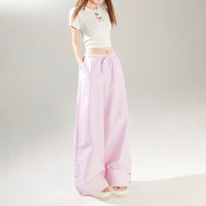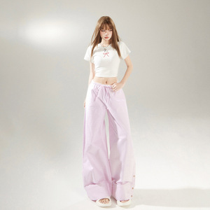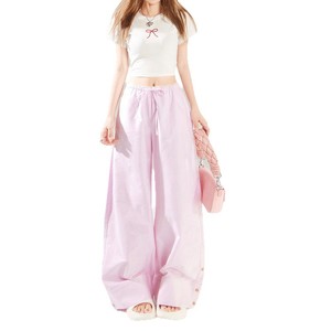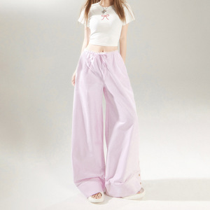 KRO ローウエストストライプワイドレッグカジュアルパンツ女性のための 2025 春の新スタイル怠惰な巾着レースドレープフロアモップパンツ