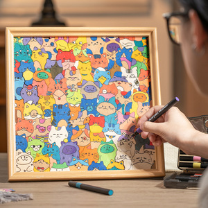 手绘可爱猫咪相框拼图+36色马克笔-收藏关注优先发货