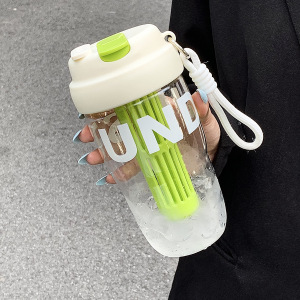 おしゃれな新しい高見えストローカップ、茶隔離、漏れ防止、持ち運び用ロープ付きプラスチックカップ、ポータブルダブルドリンクハンドルタンブラー