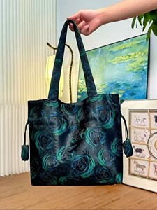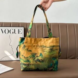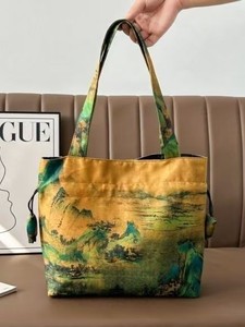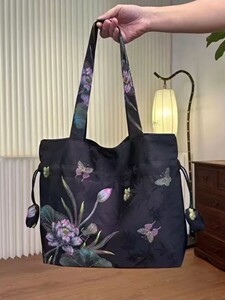 精致仿香云纱手提单肩包印花复古丝绸国风新款时尚女包