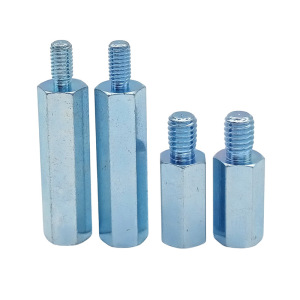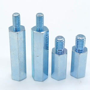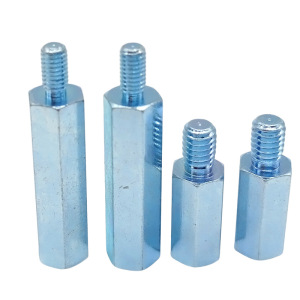 メーカーカスタマイズされた六角単頭単通スタッド鉄炭素鋼亜鉛メッキ内外歯陰陽絶縁サポート接続部品 m4