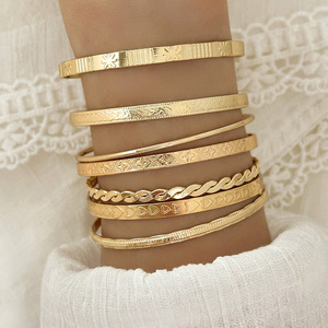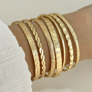 欧美跨境敲打纹爱心开口手镯 爱心麻花点点光面花纹菱形铁手镯女