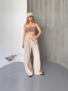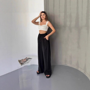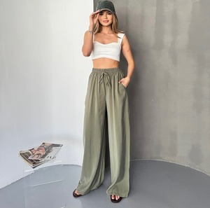 クロスボーダー 2025 新しいヨーロッパとアメリカのアマゾン独立ステーション快適な無地ルーズワイドレッグパンツ巾着ドレープカジュアルパンツ