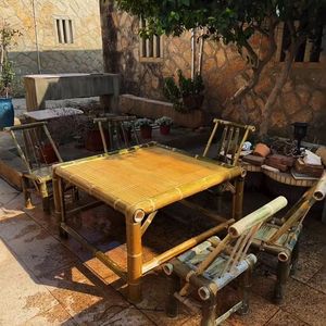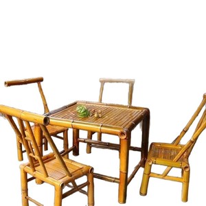 纯手工竹桌子茶桌碳化餐桌茶几办公家用庭院火锅桌复古凳子竹客厅