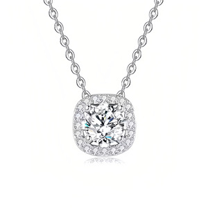 S925纯银小方糖项链女简约时尚百搭小众时尚轻奢锆石吊坠锁骨链