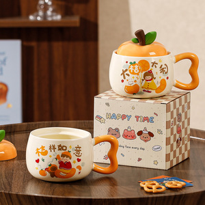 新しい柿柿如意マグ高価値かわいいセラミックウォーターカップ大きなオレンジイタリアクリエイティブギフトカップ卸売