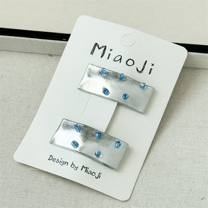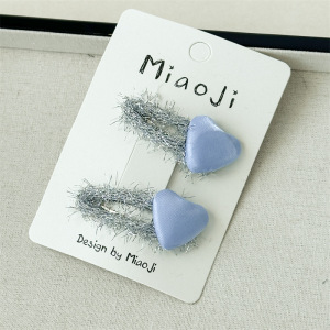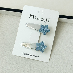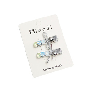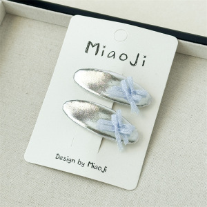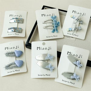 韓国風生地のシーブルーシルバースターリボン女の子用ラインストーン前髪カモノハシクリップ子供用ヘアクリップのペア