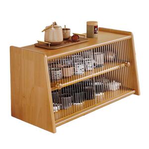 日本製無垢材サイドボードデスクトップ収納キャビネット食器棚ウォールナット色のダイニングテーブル収納ラックカウンタートップ収納ラック