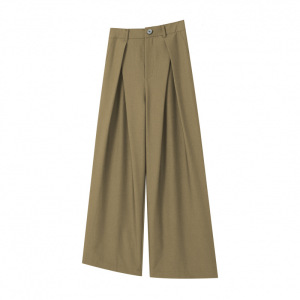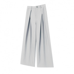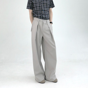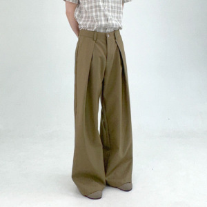 厚手の混紡素材、プリーツ入りAラインストレートワイドレッグ、ドレープ感のあるカジュアルロングパンツ、春夏向けメンズブランド、ハイウエスト
