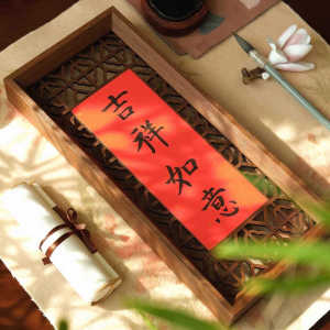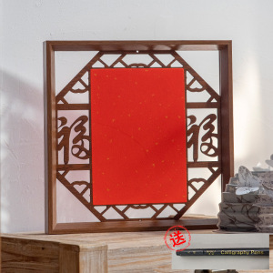 木製中国風中空手書き空白書道フォトフレーム装飾赤い金紙両面立体絵画装飾品