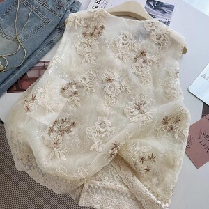 2025 中国風重工業多用途刺繍スパンコールレースベスト薄型新しい国民風ベストベストジャケット