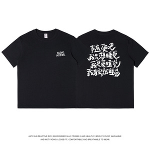 ニッチデザイン楽しいプリント Tシャツメンズ純綿夏の新しいトレンディなブランドルーズ個性ラウンドネック半袖女性の通勤