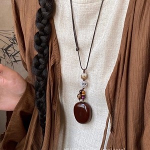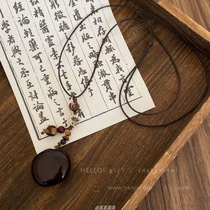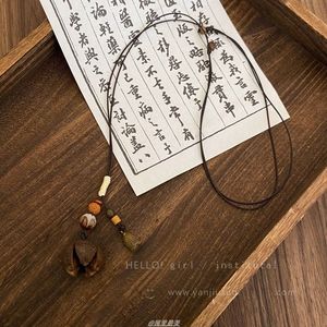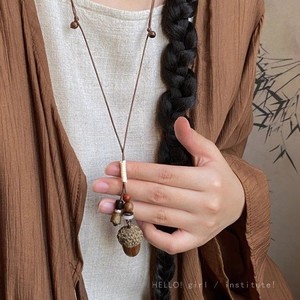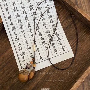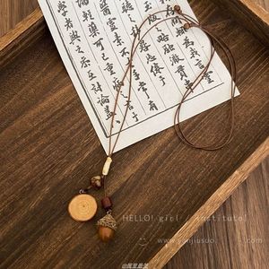 木製トップノート中国風ロングワックスロープドングリペンダントネックレス新中国禅デザインセーターチェーンアクセサリー