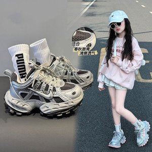 女童厚底老爹鞋防滑网面透气运动鞋儿童跑步鞋2025春中大童系带潮
