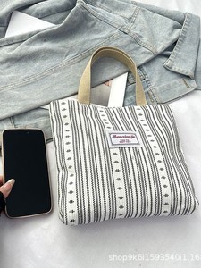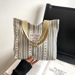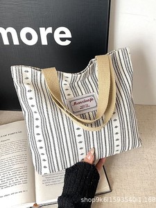 ins日式包2025大容量帆布包时尚条纹手提上课托特通勤帆布手提袋