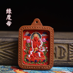 手描きタンカ、辰砂、ザキラム、五台山五黄財、緑度母、黒財ペンダント、手描きタンカ