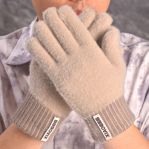 メンズ手袋 5本指手袋 無地ラベル フィンガーレス タッチスクリーン 暖かいウールニット 防寒手袋 韓国版