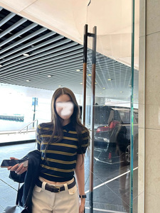 おはようファンファン テンセル リヨセル ストライプ ニット 半袖 Tシャツ ハイインテリジェンス 年齢軽減 POLO カラー トップス レディース 春