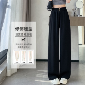 ファットMMプラスサイズアイスシルクワイドレッグパンツレディースドレープハイウエストスリム夏ナローカジュアルストレートパンツルーズスーツパンツ